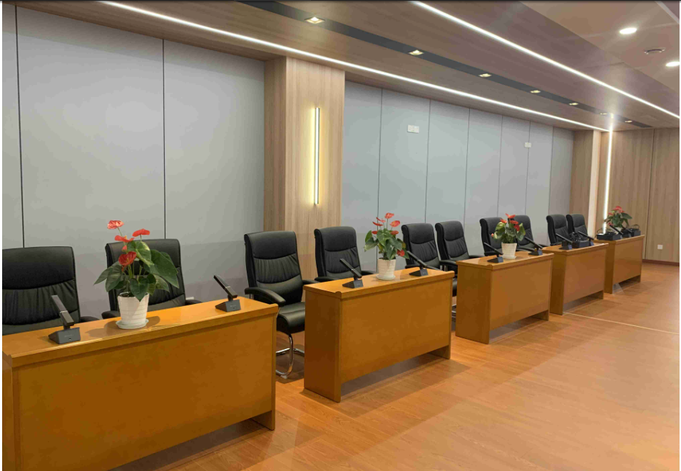 公司為會(huì)議發(fā)言配置雙振膜觸控式會(huì)議單元HY-6320系列,支持?jǐn)?shù)量限制、先進(jìn)先出、后進(jìn)先出、主席允許、限時(shí)發(fā)言、排隊(duì)發(fā)言、自由討論共八種會(huì)議模式,以適應(yīng)多種類(lèi)型會(huì)議場(chǎng)合。