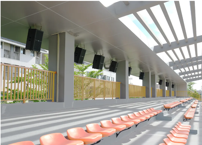 訓(xùn)練場地 本項目訓(xùn)練場地分為三個,在系統(tǒng)設(shè)計期間,考慮到三個場地的設(shè)計結(jié)構(gòu)基本相同,最終采用相同的訓(xùn)練場館擴(kuò)聲系統(tǒng),使得整個深圳市青少年足球訓(xùn)練基地擴(kuò)聲系統(tǒng),無論是從視覺上還是聽音效果上,都達(dá)到了完美的風(fēng)格和諧統(tǒng)一。 訓(xùn)練場地一和訓(xùn)練場地二的主擴(kuò)聲系統(tǒng)采用了32只MISSION的MSW系列全頻防水音箱。兩個場地各采用了16只MSW9012F和MSW9015F的防水線陣系統(tǒng),分布懸掛于兩個場地觀眾席上方覆蓋全場,各搭配8臺MI1300的功率放大器,將MSW系列全頻防水音箱性能發(fā)揮到極致。 訓(xùn)練場地三采用了16只MSW9012F全頻防水音箱固定安裝于墻頂,MSW系列的安裝方式非常靈活,可根據(jù)不同的項目情況進(jìn)行靈活安裝,適合各類墻面安裝應(yīng)用,同時搭配8臺MI1300的功率放大器,使其聲音能量均勻覆蓋聽音區(qū)。
