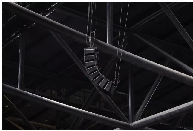 由于馬道在膜上方,揚聲器沒有固定安裝點,因此安裝和檢修非常困難。另外,其上下擺動的幅度達到1.5米以上,為整個擴聲解決方案設計增加了很多難度。