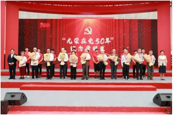 在此次主題黨日上,校黨委書記焦揚、校長許寧生為11名老黨員代表頒發“光榮在黨50年”紀念章,青年黨員為老黨員獻花,汲取精神力量,握緊接力棒,六位黨齡逢十的黨員代表依次上臺,齊聲祝福中國共產黨成立100周年,同過政治生日,共度光榮時刻。