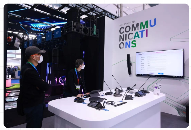 在廣播和會(huì)議產(chǎn)品區(qū)域,現(xiàn)場模擬的會(huì)議場景讓博世會(huì)議方案活靈活現(xiàn)。博世基于IP的會(huì)議產(chǎn)品線新品—DICENTIS模塊化嵌入式發(fā)言設(shè)備,毫無疑問是該區(qū)域的最大主角。DICENTIS會(huì)議系統(tǒng)是目前行業(yè)內(nèi)首款支持PoE連接的模塊化嵌入式發(fā)言產(chǎn)品。