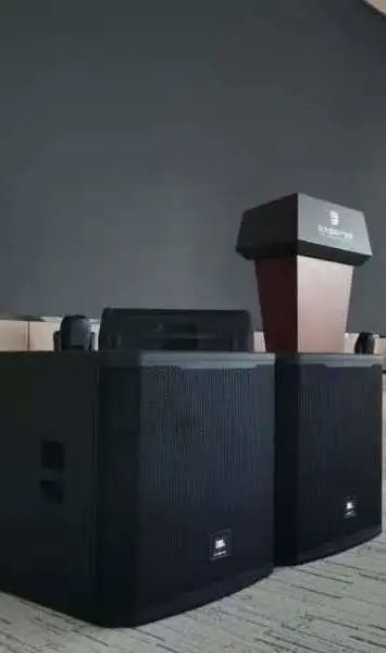 廳內(nèi)主擴采用8只美國JBL Professional SRX910LA新一代巡演級線陣列揚聲器,搭配新一代智能有源超低PRX918XLFW,舞臺返送采用PRX912雙分頻揚聲器,共同打造極致的聲音體驗。PHONIC ACUMEN 6A高保真監(jiān)聽音箱提供高質(zhì)量的音頻監(jiān)控。