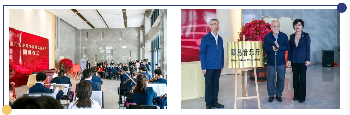 “琴原廈門市政協(xié)主席、廈門市音樂學(xué)校名譽(yù)校長(zhǎng)蔡望懷,廈門市委教育工委委員、副局長(zhǎng)洪軍,廈門市音樂學(xué)校黨委書記、校長(zhǎng)譚筱英共同為琴島音樂廳揭牌。